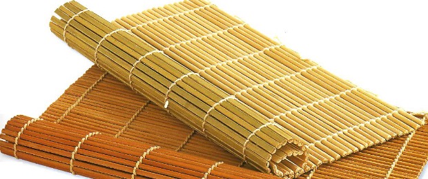 Extender la esterilla de madera para makis y cubrir con film adherente.